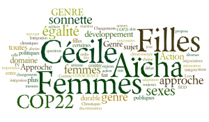 Lors de la COP21 Paris, le sujet a été mis à l’ordre du jour des négociations, mais plus en questions diverses qu’en approche sérieuse. En préparation de la COP22, qui est celle de l’action, les acteurs œuvrant dans le domaine du genre tirent la sonnette d’alarme sur l’importance d’intégration de l’Approche Genre dans l’atténuation et l’adaptation aux Changements Climatiques.